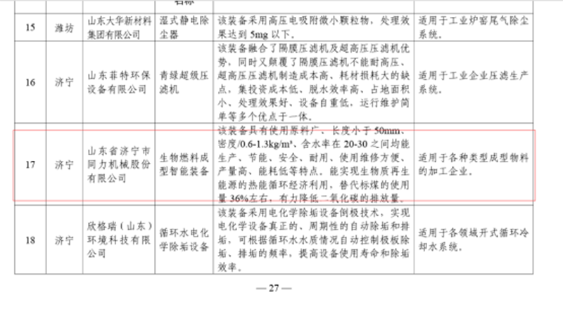 关于公布《山东省工业领域先进节水节能环保技术装备推广目录》的通知